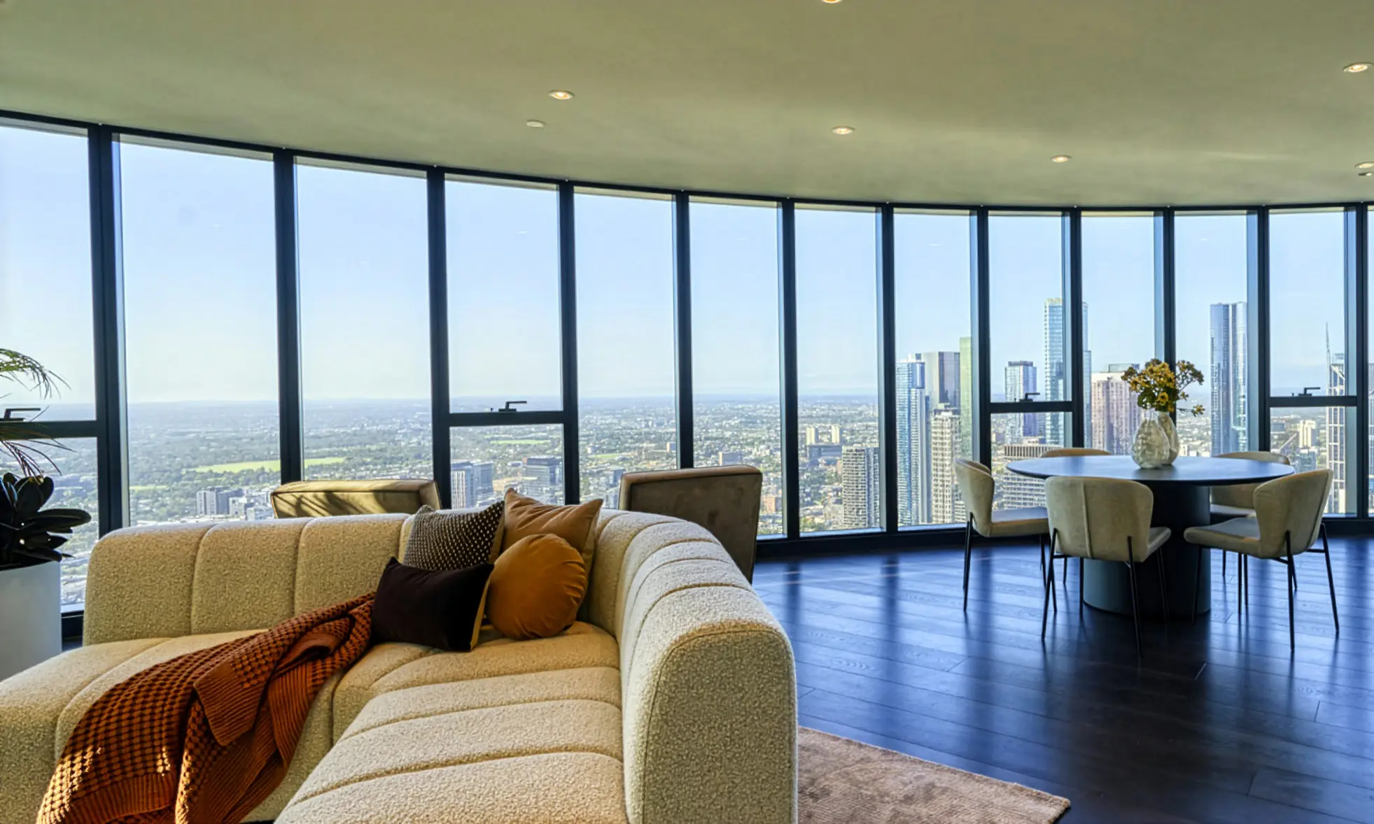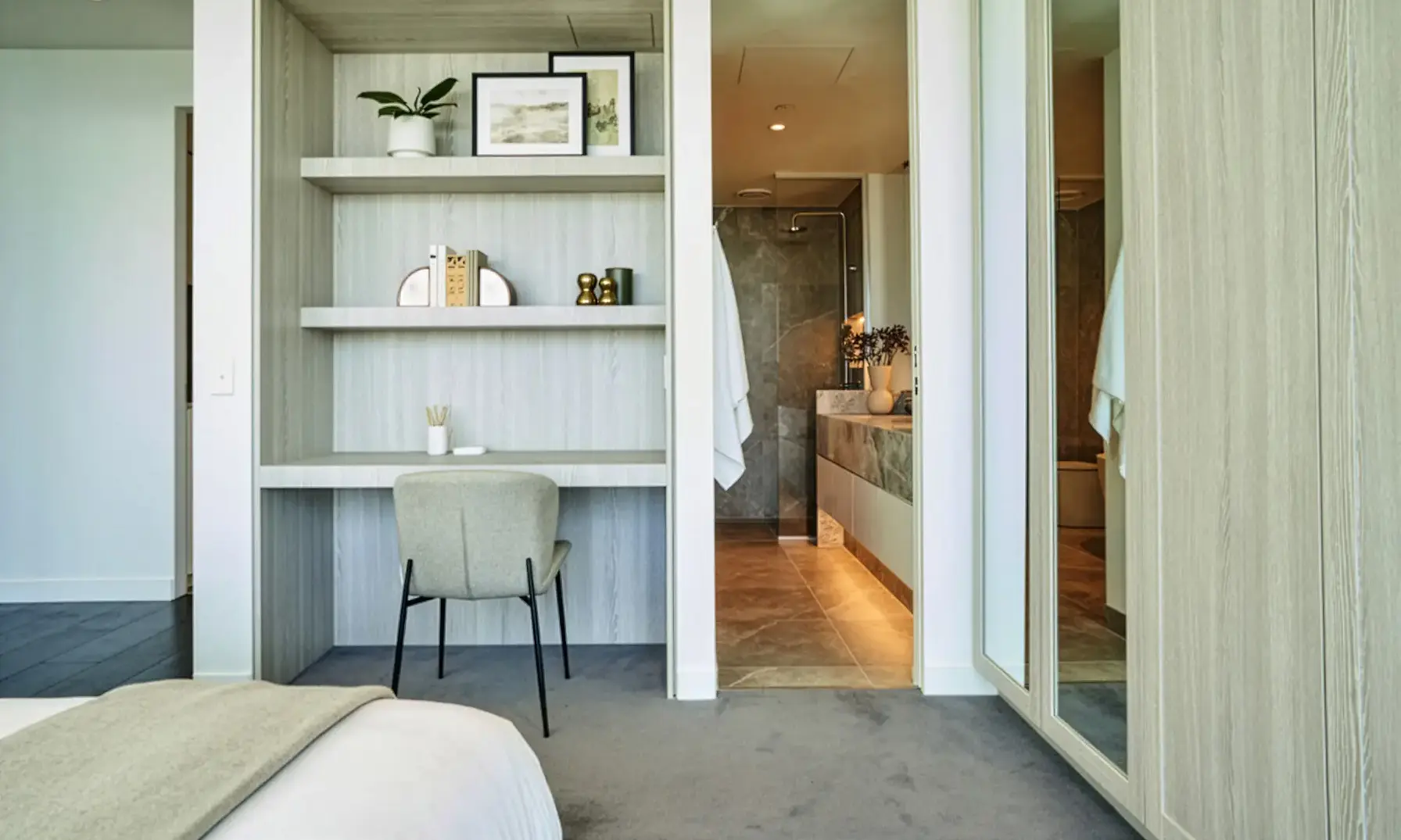 Soaring above a beautifully appointed lobby and concierge arrival, Aspire’s residences are shaped by full-height glazing, sculptural curves and purposeful design. The tower is crafted to maximise natural light, long-range views and a sense of calm above the city. Residents enjoy panoramic vistas across Flagstaff Gardens, the CBD skyline, Docklands and Port Phillip Bay.