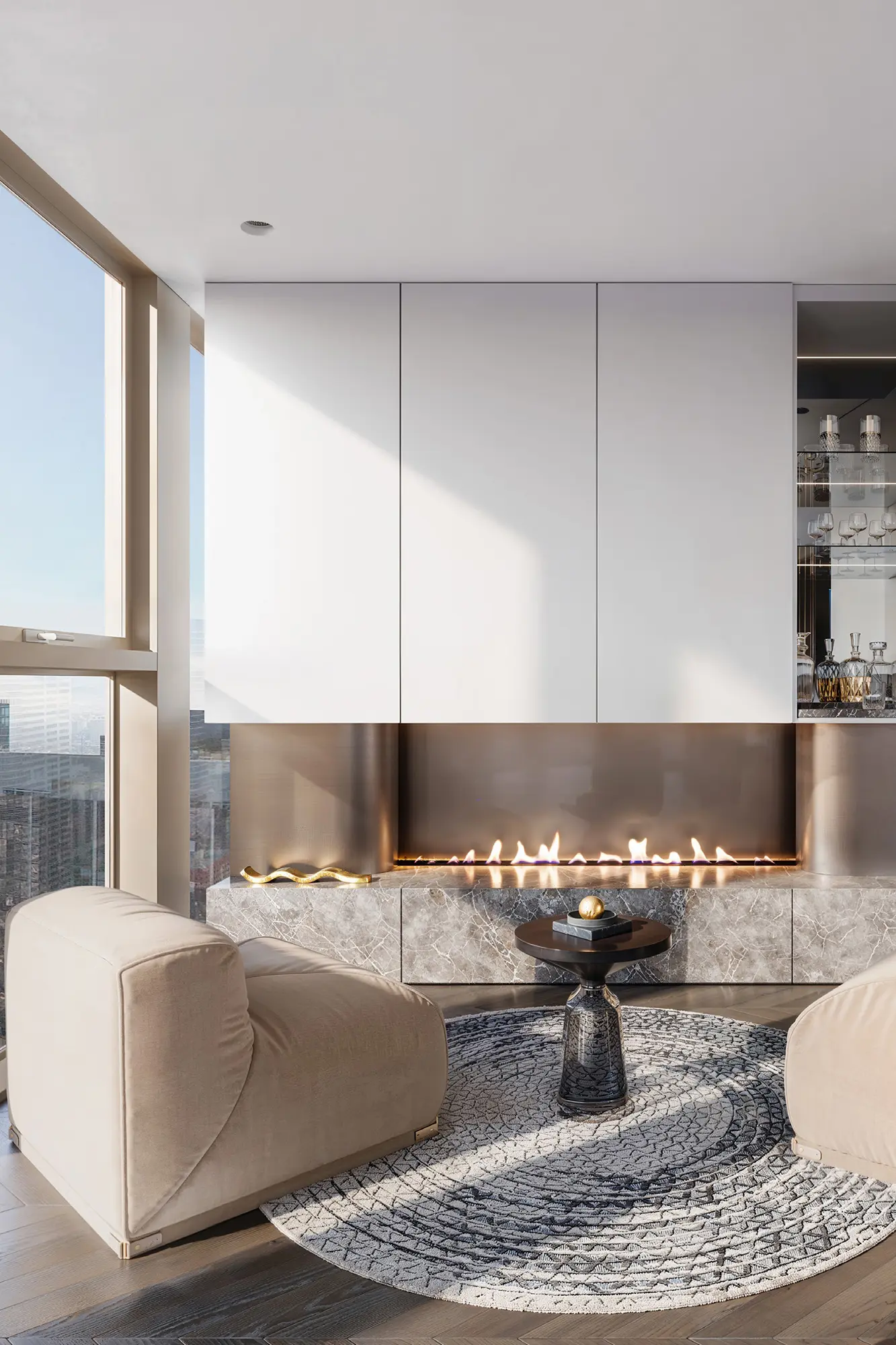 Inside, Atlas offers a true vertical village. Three levels of amenity — the Sky Club (Levels 71–72), Horizon Collective (Levels 42–43) and Wellness Club (Level 8) — create spaces for celebration, productivity, relaxation and wellbeing. From a whiskey lounge in the clouds to a cinema, pocket park, coworking floors, pool deck, sauna, spa and treatment rooms, Atlas is crafted as a world beyond the everyday.