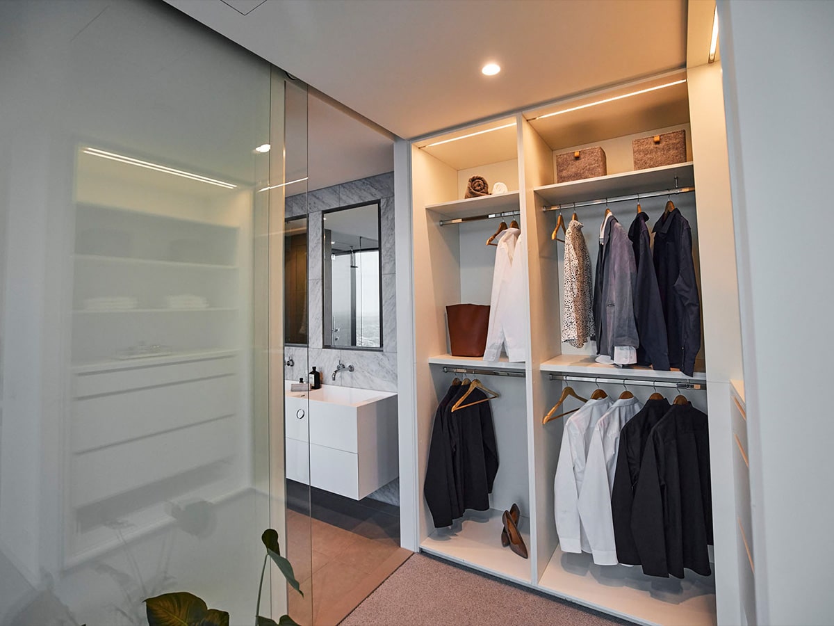 The apartment boasts floor-to-ceiling glass and sweeping panoramas from multiple aspects. Each room embraces grand vistas from every room, letting an abundance of natural light in. The entertainer’s kitchen and bathrooms are dressed in natural stone, with high-quality finishes and premium European appliances. For the ultimate party host, selected apartments even feature a hidden scullery or butler’s pantry. Cloud Residents enjoy an opulent master bedroom, where a large walk-in-robe leads into an elegant ensuite with a standalone bath.