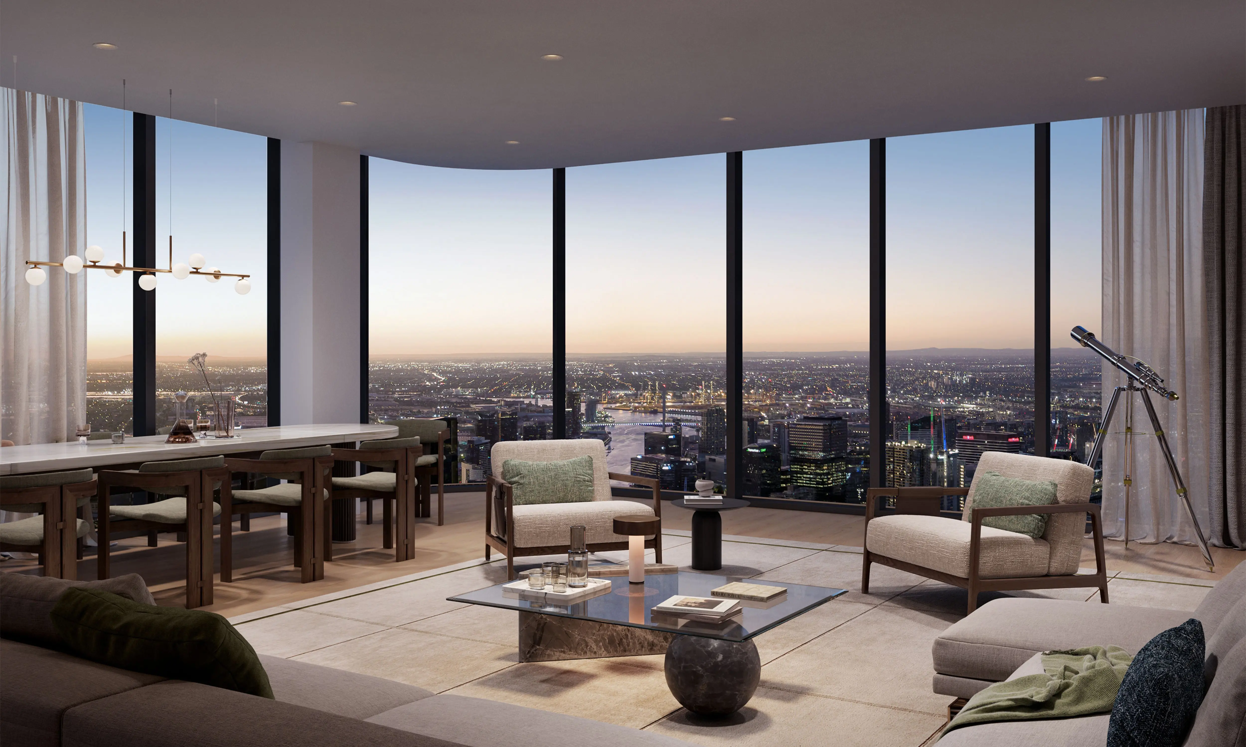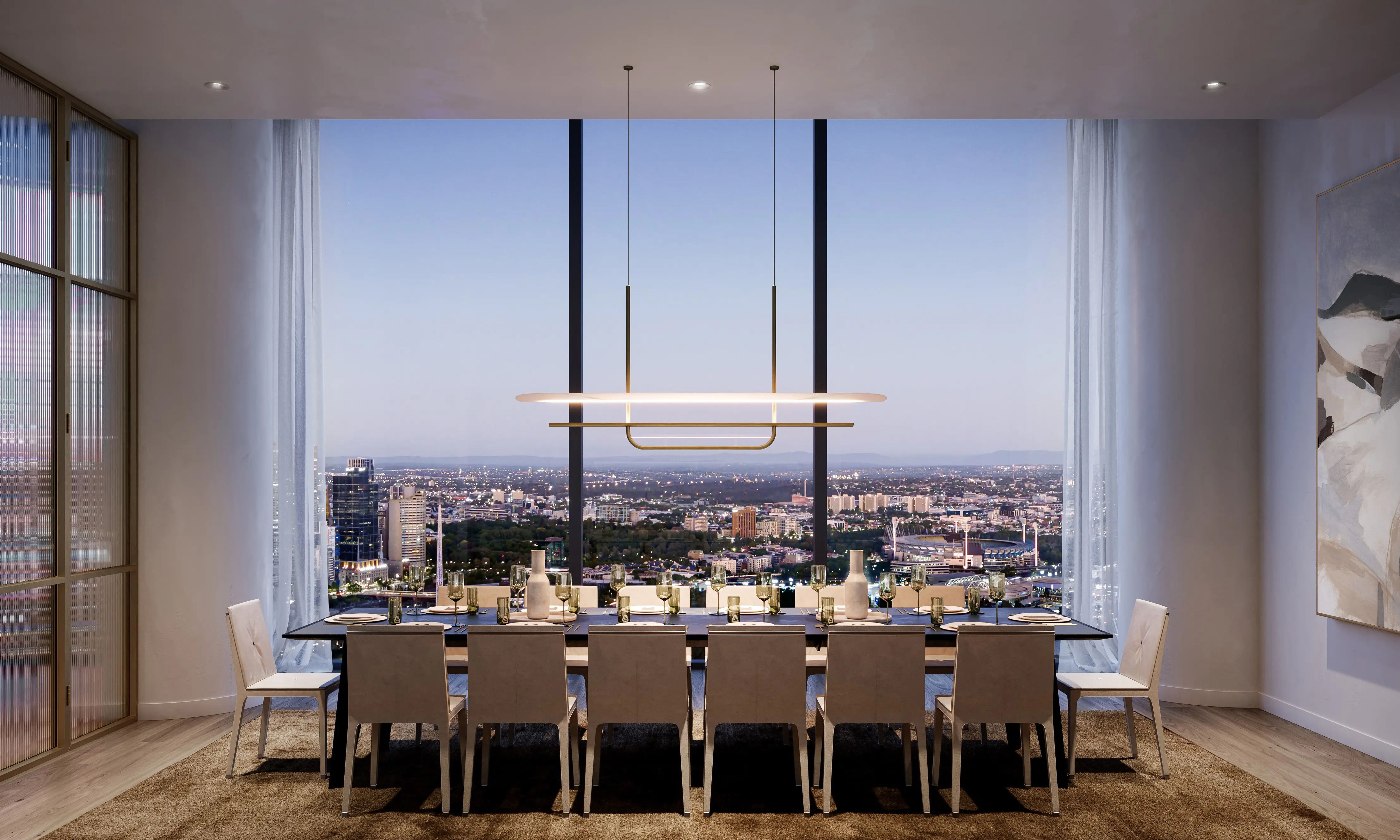 The Level 55 Skye Club and Horizon Dining are huge drawcards. Private dining, cocktail bar, city and garden vistas — it’s exclusive, impressive and something buyers won’t see in most new developments.